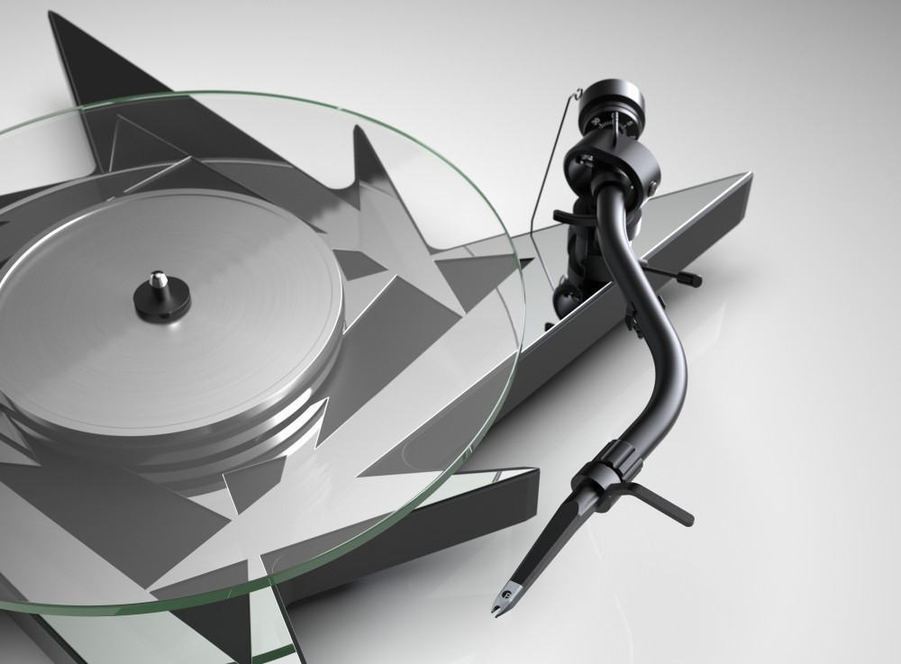 Üveg tényér - A nehéz, alacsony rezonanciájú üveg tányér és alumínium szubtányér ennyüttese kiváló sebességtartást biztosít, alacsony rezonancia mellett. Emellett az üveg lemeztányér jól láthatóvá teszi a lemezjátszó váz különleges dizájnját is. Ám a legfotnosabb nyilván az, hogy az olcsó, préselt lemez szerkezet helyett masszív, a hangzás szempontjából is jó szerezettel életre kel a zene, a húrok, a dobok, az ének.