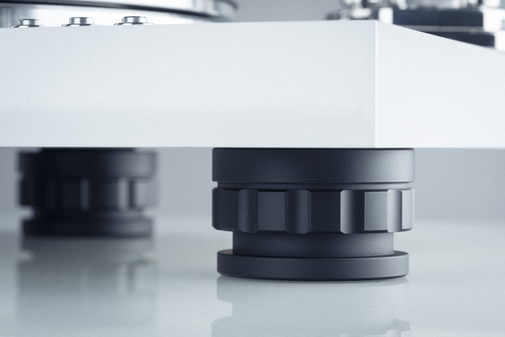 A 10 kg-os alumínium TPE-csillapítású tányér egy mágnesesen leválasztott, fordított csapágyon ül. A tetején lévő vinyl réteg tökéletes felületet biztosít a lemeze számára.