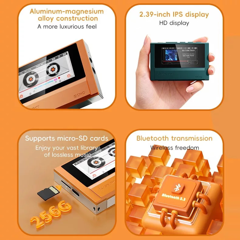 A Snowsky Echo egy retro hangulatú veszteségmentes lejátszó fizikai gombokkal és kazetta animációval. Nemcsak zenehallgatásra használható, hanem egy kicsit időutazásra is.